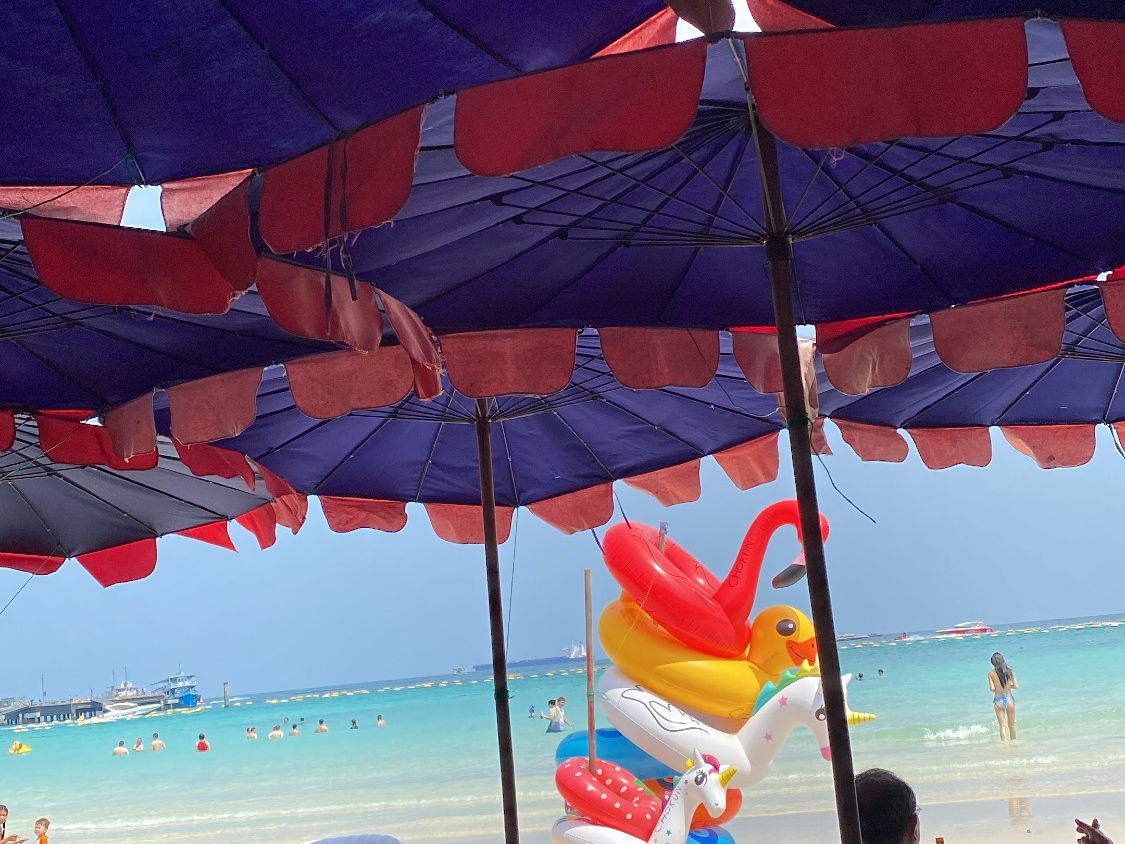 パタヤまで一回ガソリンスタンドで休憩がありました。ガイドさんはとても気さくな方で良かったです。パタヤの海はあまり綺麗ではありません。パタヤに着いてからは高速船の様なものに乗って、ラン島に到着。船から降りる時膝まで濡れるので短パン、サンダルがいいと思います。
