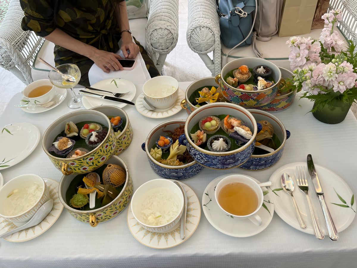 食べ物は甘い物がスコーンくらいで、あとはしょっぱい物が多かったです。どれもとてもおいしかったです。タイ料理が苦手でも食べられる程度のものばかりです。いくつかなくなってから、店員さんが「これはブッフェスタイルだかは、おかわり欲しかったら持ってきますよ」と言ってくれて、まさかの食べ放題なのは衝撃でした。5種類くらいはおかわりしましたが、元々が多いのでそんなに食べられるわけでもなかったです。