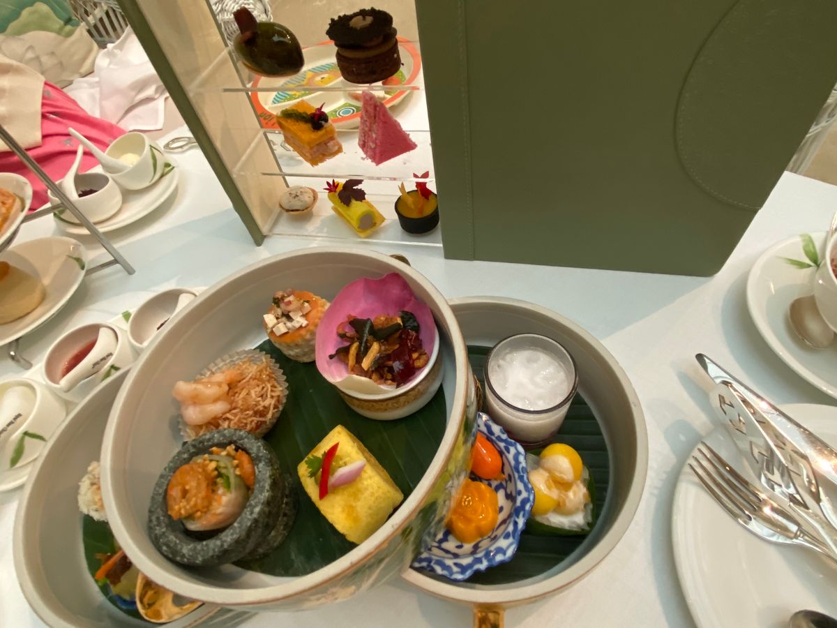バンコクに住む駐在員奥様にも憧れのマンダリンオリエンタルのアフタヌーンティー。1泊2日の宿泊キャンペーンでお泊りした時に、VELTRAさんを通じて予約しました。私、奥様、7歳の娘3人です。別の方が書かれているので窓際の席を期待していましたが、我々だけでなく、アフタヌーンティーを注文している周りの日本人家族含めて、入り口すぐの席に案内されました。窓際の席が満席と言う訳ではなく、入り口付近だけ満席に。理由は分かりません。注文の時にお店の人にお勧めを尋ねるとウェスタンとオリエンタルを1つずつ注文するのがいいとの事だったのでそうしました。が、結論から言うとウェスタン1択でいいかと思います。7歳の娘にもウェスタンの子ども用的なセットを出してくれました。お茶は1837ブラックティーとマンダリンオリエンタルBKKティーをチョイス。好みの問題ですが、我が家的にはMOBKKティーは途中から飲まなくなりました。何となく薬草的な味がして、ダメでした。全て食べ終わるとおかわりタイムとなります。お腹は一杯でしたが、美味しかったスイーツを追加注文。噂によるとそれを持ち帰りすらできるようです。2時間制となってますが、席に余裕があったからか2時間近く経過しても特に出ていくように言われることもなかったです。2時間食べ続けたのでとてもそれ以上長居はできそうにありませんでしたが。安くは無いですが、雰囲気、サービス、テイスト全てで娘含めて、家族みんなが満足したオーサーズラウンジでのアフタヌーンティーでした。