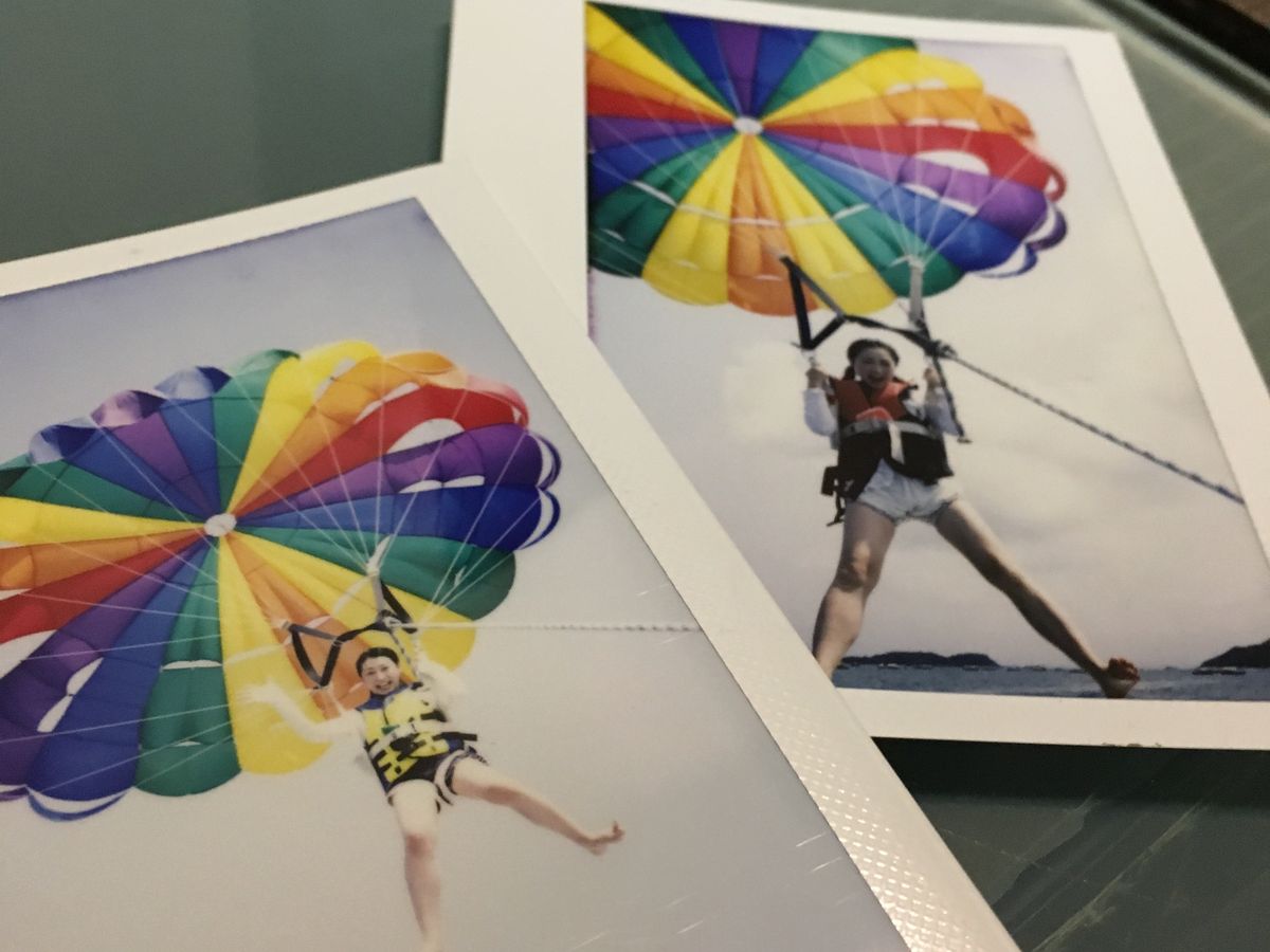 残念だったのは、カメラが持ち込まなかったこと、実際にパラシュート付けて飛んでる方は危険なので理解できるのですが、船で待ってる友達は下から充分撮れるわけで、ですが船の中から撮るのもNG、船のスタッフが写真撮ってくれましたけど一眼レフとかではなくポラロイドの写真で、しかも1枚200B、ゴープロを持ち込んでいた人もいましたが撮影禁止。何のためにわざわざ体験したんだと思いました。
