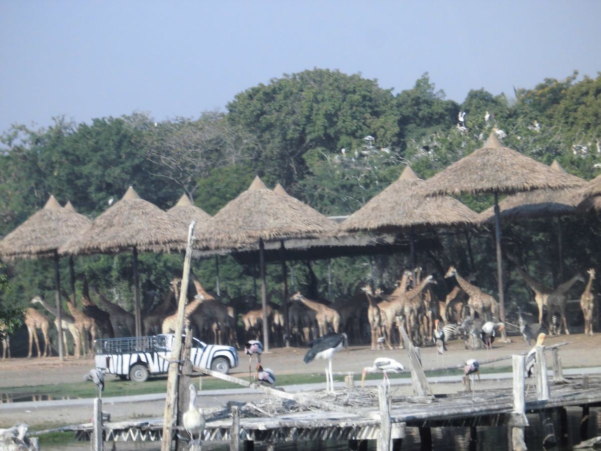100バーツで餌(バナナ・いも)を購入すると キリンが首を長くして沢山近寄って来ます。