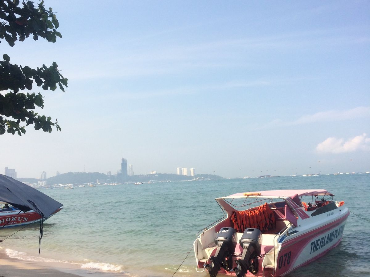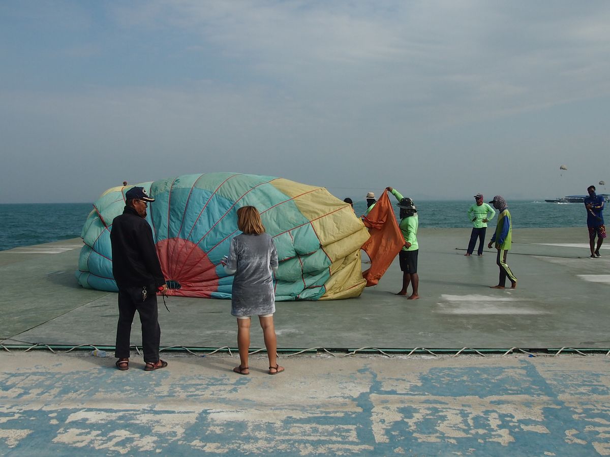 パタヤビーチでパラセーリングをやるグループ(付き添い含む)、やらないグループに分かれてボートで移動。