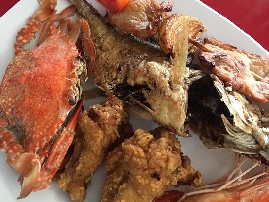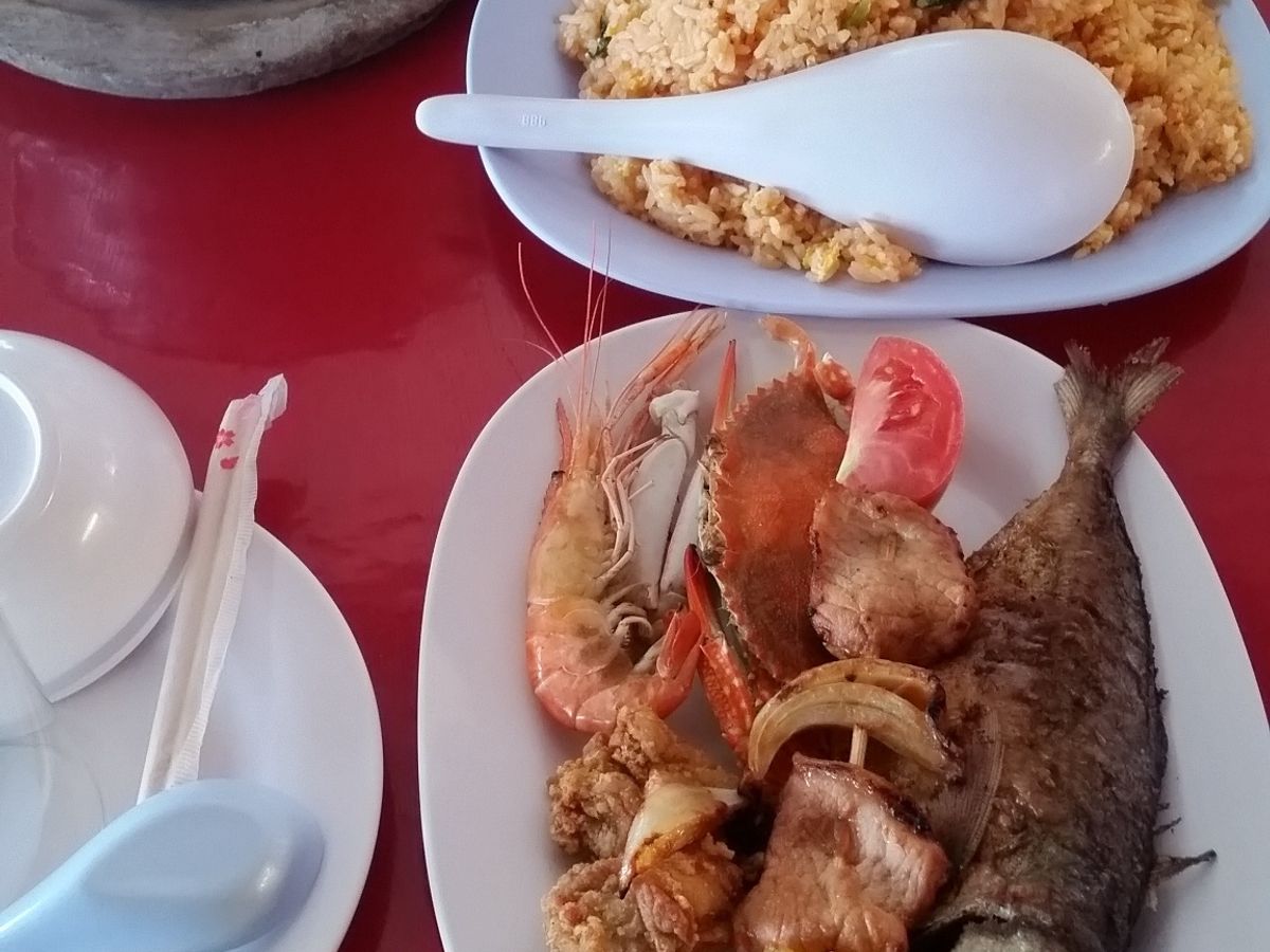 お昼は、スープ、鶏肉や魚の素揚げ、チャーハン、焼きそば、炒めもの、蟹・海老などという感じでしたが、みなさん余り食べていなかったです。