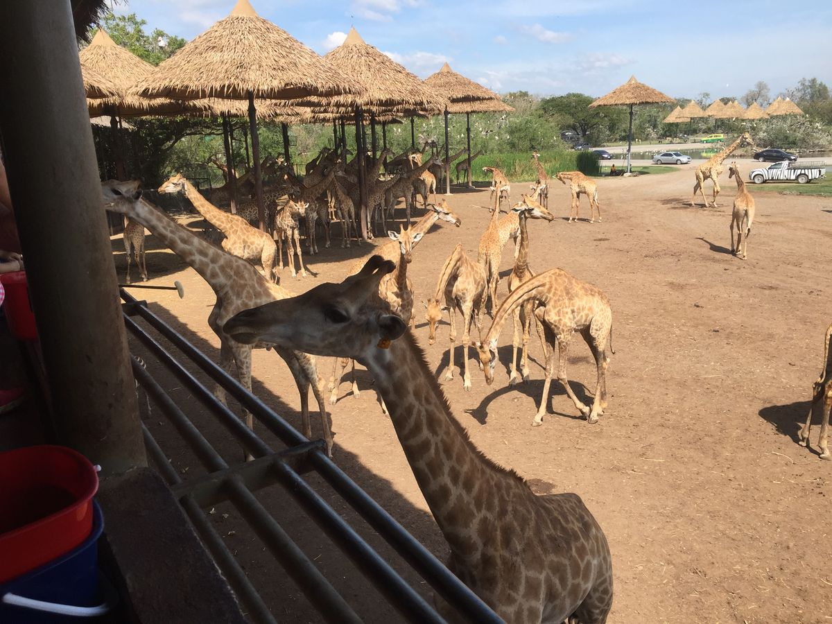 アシカ・象・オランウータンのショーを見た後にキリンの餌やりに行きました。バケツに芋とバナナが入っていて100バーツでした。結構量がありますので、二、三人であげても楽しめると思います。続いてお昼のビュッフェランチとなります。種類はまずまずありますが、辛いものもあります。別にブースがあり、タイラーメンとアイスクリームが食べ放題となっておりました。タイラーメンは辛くなく、アイスクリームもまずまず美味しかったのでお子様にオススメですので、お子様連れには良いと思います。