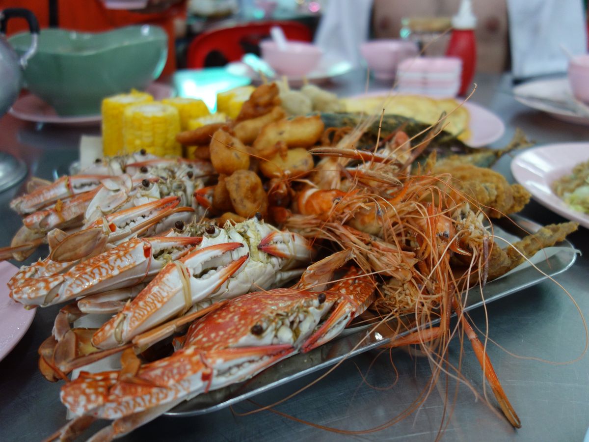 ランチは海鮮がメインで、カニやエビの殻はスタッフの方が割って食べやすくしてくれました。海で遊んではらぺこだったのでおいしくいただきました!