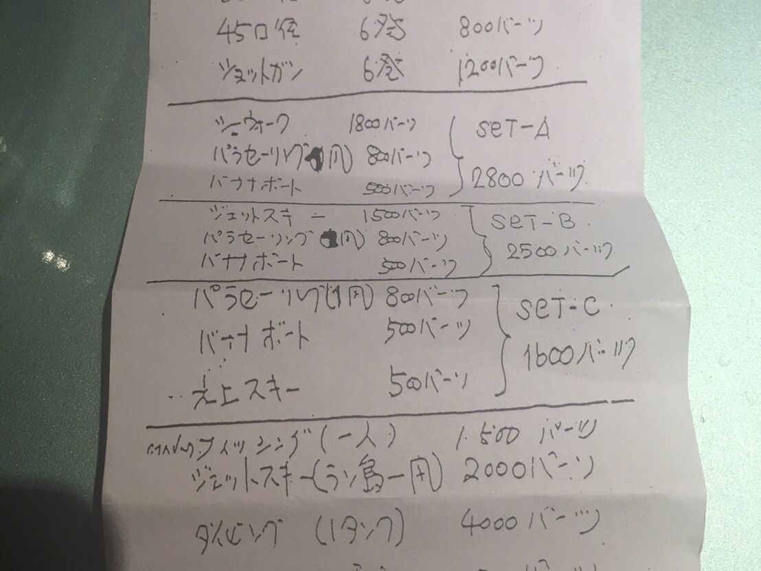 パタヤに到着したら有料でオプションの申し込み(パラセーリング・ジェットスキー・シュノーケル、ダイビング等)を申し込む事が出来ます。
