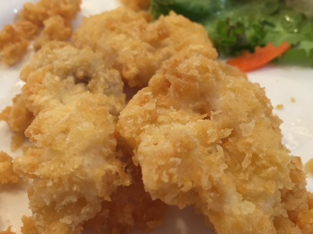 イカフライはお皿いっぱいにフライが入っています。美味しいのですが、申し訳ないのですが、食べきれず残してしまいました。ごめんなさい。