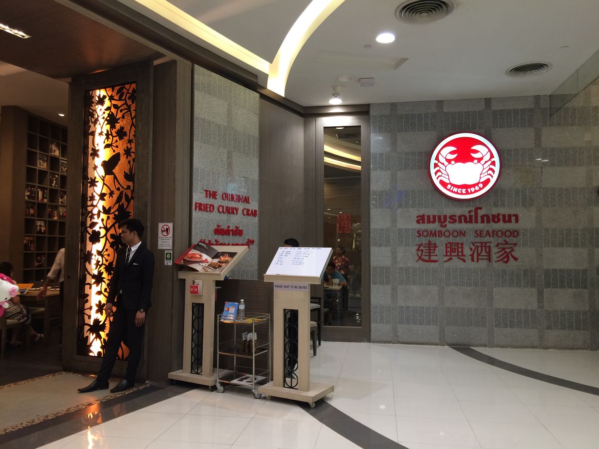 バンコク到着日の晩、BTSでサラディーン駅下車、パッポン通りのナラヤで買い物をして、ジムトンプソン本店で買い物をして、徒歩でMRTサムヤーン駅隣接のチャムチュリスクエア ヤムヤーン店のソンブーンシーフードへ。少し歩きますがBTS利用ならこのパターンも観光買い物もできていいかも。