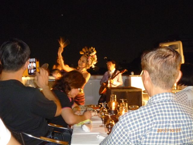 船と聞いて、揺れるのではないかと思いましたが、ワンランク高い方にしたので、全然でゆったりのんびり東洋のベニスを満喫しました。昼間は川の水が濁っていて汚いですが、夜は見えませんし・・・