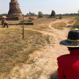 市内の王宮などのきらびやかさと違い、自然の状態に近い遺跡が趣があって良いです。像乗りは現地で300バーツ追加でプラス10分するのがおすすめです。蓮の池?川?の中を歩いてくれて、なかなかできない体験でした。アユタヤは遺跡が点在していて個人で回るには時間も手間もかかるし、ツアーが効率的だと思います。