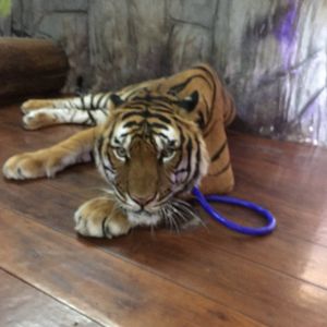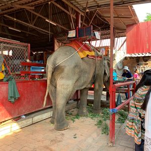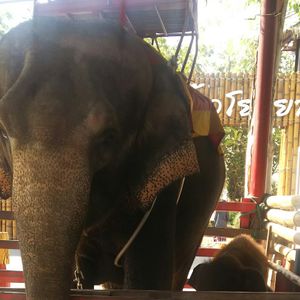 象乗りは想像以上に揺れましたが、1歳9ヶ月の我が子はバーに捕まって膝の上で体験することができました。予定では象乗り体験だけでしたが、すぐ横でトラと記念写真を200TBで撮れるとガイドさんが案内してくれて、迷わず追加しました。小さい子連れで怖くないのかと他の団体の高齢日本人夫婦に言われましたが、子供達もいい経験ができたと思います。トラ使いの指示に従わずにトラを怒らせてしまっている男性が居たので、体験を希望される方は気をつけてください。