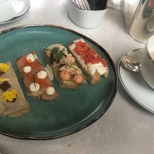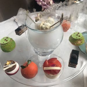 アフタヌーンティーは、とてもオシャレで、SNS映えします。ドライアイスの演出も、盛り付けも素敵でした。オープンサンドが特に美味しかったです。ただ、甘党ではない私には少し甘すぎました。