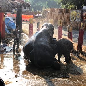 象に乗るのは怖かったけど、面白かった。象乗り体験の場所はちょっとしたマーケットみたいになっていて、バンコク市内で買うよりもかなり安く買えた。お勧めです。