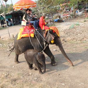 ゾウ乗りでは、片言の日本語で上手くこちらの気分を上げ、ゾウの牙(絶対プラステック)のブレスレットをつけてくれます。降りるときにチップを要求され相場の20Bを渡すと、【ゾウサン歩いたからお腹減ってるよ!300Bはいるね!ブレスレットかわいいね!】と要求。ブレスレットを返すとそこから無言を貫かれ、所詮商売か。といったところです。ガイドさんはその光景をみて、払って上げないとかわいそうと、ぼったくりの肩を持っていました。。マージン入るのですかね。