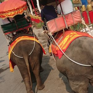 象乗りは写真の場所ではないです。1人参加でもガイドさんが1人で像に乗ると言っていましたが、なぜか他の1人参加の方のところは呼び寄せられ一緒に乗るよう促されました。私はお話しする相手ができて嬉しかったのですが、言ってることとやってることが違うのは嫌だと思う方もいるかもしれません。めちゃくちゃ揺れるので10分で充分です。写真は有料で自分のカメラでは象と一緒には撮ってくれません。