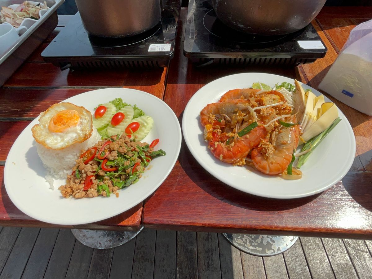 チャオプラヤー川クルーズについてはバンコク→アユタヤ便についてはいつも乗船人数が少ないとの事でこちらも貸切でした(アユタヤ→バンコク便についてはかなりの人数が乗船されるとのことです)。乗船してすぐパンとフルーツの軽食の提供があり、さらに昼食はそこまで期待してませんでしたが、想像以上に本格的で美味しいタイ料理を楽しむことができました。パッタイやガパオライス、トムヤムクンに加え、伝統的なタイ菓子もあります。