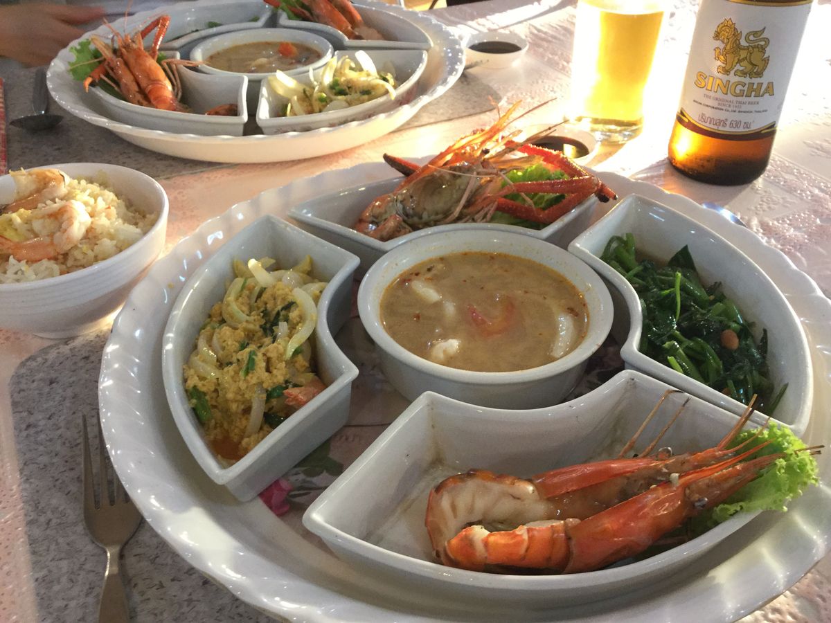 食事はデラックスプランにしていたので、アユタヤ産の川海老をいただきました。唐揚げと素焼きと2種類あったのはポイント高いです。写真のようにセットになっていて全体の見た目も良い感じです。