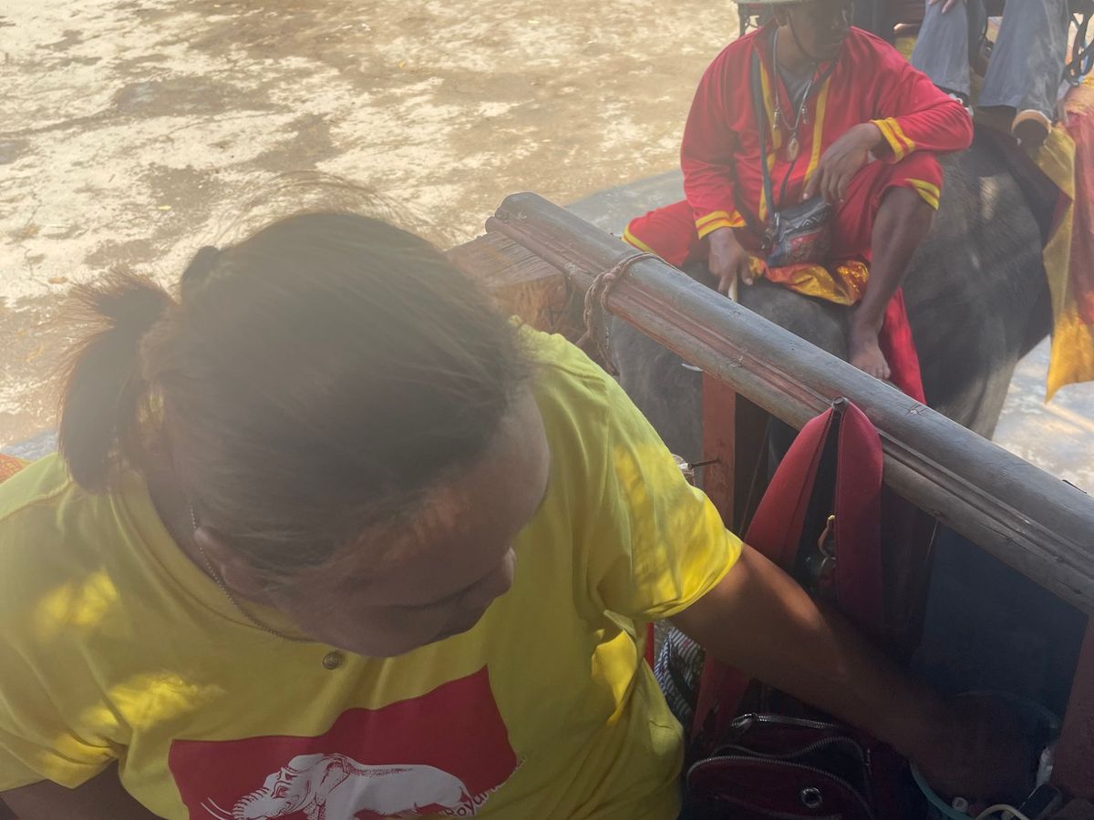 象乗りは結構揺れるので、少しびっくりしましたが、大きな体でゆっくり歩く象の背中から見渡す景色は貴重な体験でした。アユタヤ遺跡と併せて、こちらもタイの良さを存分に味わえます。
