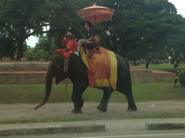また、象に乗って散歩もできるので、アユタヤに