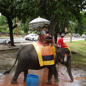 家族4人で参加しました。夜の遺跡ライトアップを楽しみにしていましたが、照明も少なくライトアップというほどの迫力はありませんでした。昼のアユタヤ観光、象乗り、夕食、夜のライトアップ遺跡と盛りだくさんの内容でしたが、個人的にはおまけでついていた象乗りが一番面白かったかも。10分くらいでしたが、高さと結構な揺れなのでその時間でも十分。他の方の書き込みのようにチップを要求されることもなかったし、乗り終わった後に小象と触れ合って写真を撮れたり(別料金)できたので、20代の娘たちも写真を撮りまくってインスタにあげていました。
