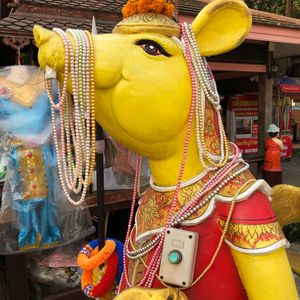日本語ガイドさんから、タイ式の参拝の仕方を教えて頂き実践しました。ゴールドのガネーシャに金箔をはったことは、旅の思い出です。その後、30分くらいの自由散策があり、たくさん写真を撮ることができました。