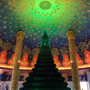 次はワットパクナムに向かいました。エメラルド色のガラスでできた塔はとても綺麗で、天井画と相まって幻想的でした!最後にレストランのザ・ローカルでカレーを食べてツアー終了です。カレーはそこまで辛くないので、辛いのが苦手な方でも十分に楽しめると思います!