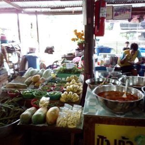 100年市場でご飯をガイドさんに聞いて食べました。チャーハン・40Bでした。時間があり揚げバナナ20Bで購入。のどかな川沿いの風景で田舎らしい写真撮影しました。