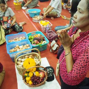 まず最初に向かったのが、ワット・ソートーン。パワースポットらしいです。当日は行事のため、新しい建物の方には入れませんでしたが、古い建物の方で、現地の方がお参りしている中を見て回れました。ここは卵をお供えするらしく、たくさんの卵がありました。