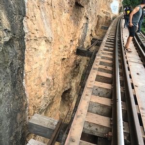映画「戦場に架ける橋」の舞台になった場所だ。そして泰麺鉄道に乗車する。のんびりと進む列車に揺られ、絶壁沿いの木造橋を進む。