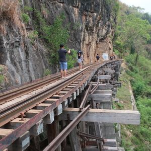 洞窟寺院→イカダ乗りと象乗り→ランチバイキング→電車を待ちながら断崖絶壁の線路の上を歩いたりしました→電車乗車30分程度→車で戦場にかける橋の橋へ移動して、線路と橋をぶらぶら→帰路