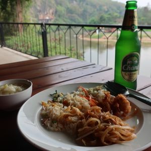 『戦場にかける橋』の映画のイメージだったのでKwai River Bridgeはもっと山深い場所かと思っていたが、意外と開けた場所だった。なかなか鉄橋を歩ける機会は無いのでこれは良かった。乗車した鉄道は猛暑と途中の平凡な風景で居眠りしそうになったが、橋を渡る際にデッキから写真を撮ることが出来た。昼食はパッタイ、炒飯、チキンなど味は良かったと思う。最後に木橋を歩いて散歩。少し怖いけど貴重な経験でした。