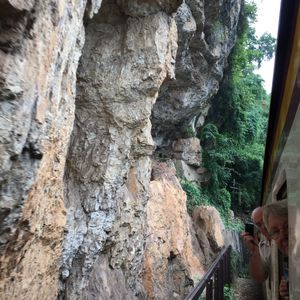 ガイドさんが、モンキーバナナや、フルーツを皆に配ってくれました。そんなやりとりで、一緒にツアーに周った方達とも親しく話す事が出来て、とても楽しい一日になりました。戦場にかける橋は、当時にタイムスリップしたような景観にとても感慨深く拝見しました。泰緬鉄道はタイの景色を満喫し、崖の凄い所を通り、観る景色、観る景色に感激しました!!!洞窟の中の観音様も観れてとても良い経験が出来、思い出深いツアーでした!!