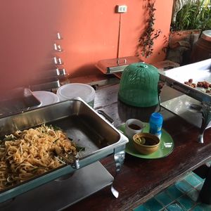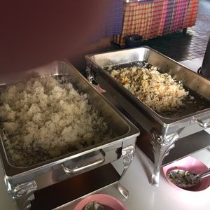 昼食は、鉄道に乗る駅の脇でクエー川を見ながら、バイキングでした。これも、辛いものが苦手な外国人用のタイ料理と、西洋料理ばかりで、我が家の口には合いませんでした。ガイドさんには、パイナップルがオススメと言われましたが、パイナップルでさえも味が薄く、美味しくなかったです。席も決まっていて、川が見える窓際には座れませんでした。隣の駅に近い、生バンド演奏があるタイ料理のレストランがあったので、そこで食べたかったです。