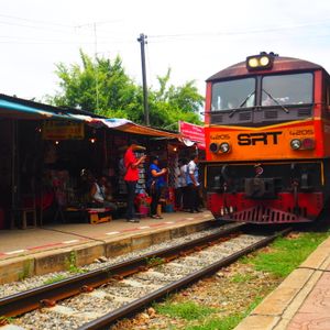 最後に予定されてたこの項目ですが、洞窟寺の後になりました。電車が通るところも見ることができてよかったです。トイレは5bahtで借りることができます。トイレの長い方がいて、その時間にガイドの方がその他の人たちを近くにある日本の列車を見に連れていってくれました。こういった小さな空き時間にガイドの方は暇を潰そうと気を使ってくれて素晴らしかったです。