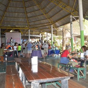 食事はタイのカレーなど種類は少ないですがタイの食事を楽しめます。クセがあるかもしれないので少しづつ食べるのがいいですね。飲み物は別料金できちんと料金は提示されてます。現金引換えです。ビールが80バーツでまあまあ良心的かと思いました。