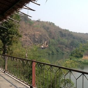 お寺の階段を登り、洞窟をくぐりぬけちょっとした探検気分を味わった後、バスでカンチャナブリ鉄橋へ移動。鉄橋上でしばらく待つと電車が通過。電車が来ると思っていなかったので、ラッキーでした。電車がすぐ近くを通過するのを鉄橋の上で見れました。移動して、象に乗ってトレッキングは、象使いの方に50バーツのチップを先に渡したら、写真を撮ってくれたり大サービス。ちょっとした山道を川まで行って川に三歩くらいジャブジャブ入ると、う⚪︎ちをぼちゃん!天然水洗トイレに流れていきました。のしのっしのんびり歩くぞうさんにもっと乗っていたかったです。お次は、川でいかだにのりました。川上に向かってスピードボートで筏を引っ張り、暫くするとUターン。スピードボートと切り離され、川下へ川の流れに乗って筏下り。意外と私はこの筏下りが気に入りました。静かな川の流れと、青い綺麗な鳥のさえずり、森や川の匂い。ほんの15分くらいでしたが自然に癒されました。バンコクより空気も良く気持ちよかったです。