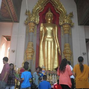 120メートルの仏塔は朝日を浴びて黄金色に輝いていた。1870年に再建されたと聞くが真新しく感じられた。多くのタイ人が熱心に拝んでいて、信仰心の厚さを垣間見た。