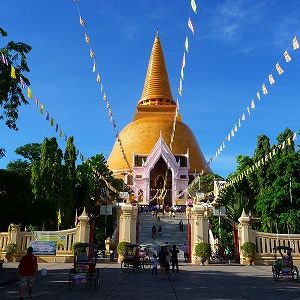 ナコンパトム寺院は行きに立ち寄ったのですが、朝の静かな時間でとても美しかったです。