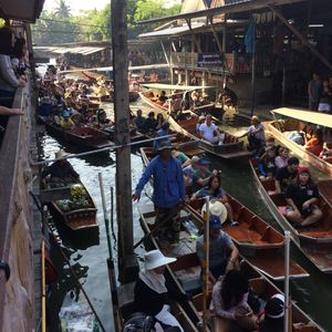 線路市場は中国人で占領されて大変混雑だが楽しめた。モーター付きボートはスリルと景観が楽しめ水上マーケットの半分くらいを見れ満足、逆に手漕ぎは、モーター付きとエリアが一部重なり売っているものは観光客向けが95%ぐらいなので200BHTで乗る価値は微妙です。女性ガイドさんは日本語が厳しい分誠実な方でした。