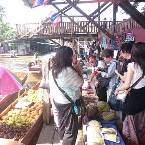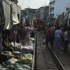 線路市場は初体験で、期待どおり間近で電車を通るのが見れたのには感動しました。ガイドさんが事前にベストポジションを教えてくれたのも◎。水上マーケットは2度目の体験で、スピードボートの迫力は遊園地のアトラクション並に面白いです。でも、水上マーケットの買物ボートは相変わらず別料金を取られるのは理由が分かりません。ツアー代金に込めないならその説明を事前にするべきです。土産物を相場の10倍の価格でふっかけて来たのには、呆れるばかりです。ツアー会社は立場上アドバイス出来ないでしょうから、個人的には水上マーケットで買物は避けましょう。ココナッツファームも昔とは変わってしまい、規模も縮小して、高いお土産を買わされる場所になっていて残念でした。