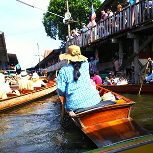 水上マーケットでは、スピードボートに乗った後、雰囲気を楽しもうと手漕ぎボートにも乗りました。沢山のボートで混み合ってはいましたが、日本では体験出来ない、いい思い出になりました!