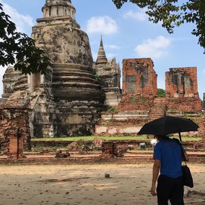アユタヤ遺跡は、特に急かされることもなく自由時間を過ごせました。日よけに傘(きっと雨用)も貸してくれました。