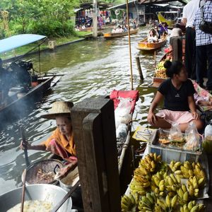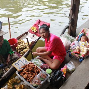 友人と2人で参加しました。移動時間が長いですが、移動車の中はきれいで冷房も効いているので思っていたよりも快適です。お水が1本もらえます。水上マーケットは手漕ぎボートもthe観光な感じでよいですが、マーケットまでのエンジンボートがスピードが速くてテンション上がります!すごく楽しい‼︎マーケットでは何も買いませんでしたが、ガイドさんに頂いた揚げバナナが美味しかったので、見つけたらぜひ食べてみてください!