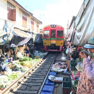 線路市場メークロンはテレビで見たことがありどんなものかわくわくしていました!市場は地元民と観光客で溢れかえっていました。間近で電車は見たもののお店が閉まるシーンは遠くから見ていたのでもっと間近で見たかったと悔やんでます(´・_・`)水上マーケットは楽しかったです!皆買ってほしくてグイグイきますが。そこで食べたタイラーメンが意外と美味しかったです(笑)