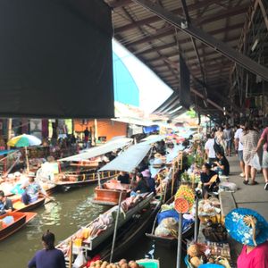 ココナッツシュガーを作っている工程も見ることができました。60バーツでココナッツシュガーGet!次は水上マーケット!モーターボートで向かいました。思っていたよりもスリルがあリ楽しかったです。手漕ぎボートは200バーツで乗れました。交渉次第で安くなります。ちなみに1⁄5まで値下げできました。お昼はバンコクに戻りビュッフェ!タイ料理三昧でした。