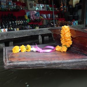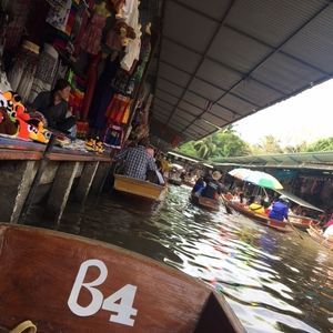 水上マーケットでは、おばさんが舵をとる船に乗るのは別途1人200バーツずつかかりますので、乗りたい方はお金を忘れずに!