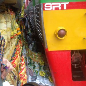 朝6時半にホテルにお迎えしてもらい、移動時間が1時間程あるのでバス内で眠れました。朝早く寝不足で辛かったですが、とても明るくて面白いガイドさんのおかけで眠気も覚め楽しむことができました!鉄道市場では線路上を歩きながら両脇に並ぶ市場を見た後、ベルが鳴りいよいよ電車が来ました。電車通過の際は、観光客でごった返していて大変でしたが何とか見ることが出来ました。続いての水上マーケットでは手漕ぎボートに乗るには追加で200バーツがかかります。でも非日常的な体験が出来て満足です。昼食はラーメンとアイスでしたが、ラーメンが思ったより美味しかったです。ガイドさんが沢山写真を撮ってくれたり、市場のお菓子の差し入れをくれたりして有り難かったです!
