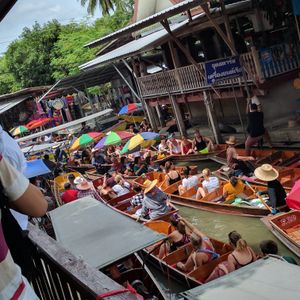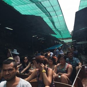 水上マーケットは、観光客向けと聞いていましたがそれはそれで雰囲気もよくボートの速さも迫力があり楽しめました。私たちは追加でお金を払い水上ボートに乗りマーケットを見学しました。少しでも気になった商品を指差すとすぐに買わされそうになるので注意してください。しっかりと断れば買わされることはありません。追加でお金を払い雰囲気を味わう価値は十分にあると思います。同じ参加者の方も払っていました。このボートに乗らない場合は時間を潰すのが大変かと思います。ちなみに、ココナッツの見学?についてははじめから興味がなく、また同じ参加者もつまらなささうにしていました。なのでトイレに寄ってすぐにバスに戻りました。