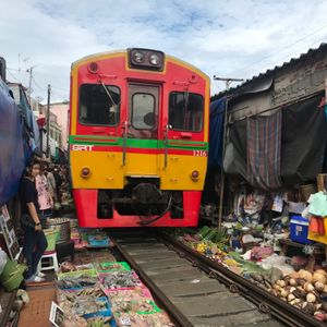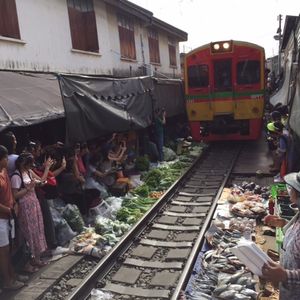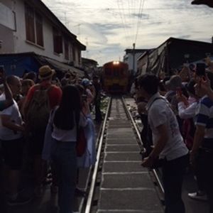 メークロンの電車は迫力あり。観光客だらけなので写真撮影のスポットは、少し前からスタンバイしたほうがよい。市場は魚系の匂いがきついが、果物は安くてとても甘いです。朝早いツアーのため、現地係員さんの気遣いでパンを差し入れしてもらい、とても嬉しく、美味しく頂きました。