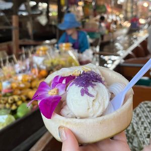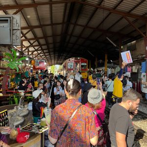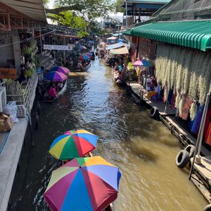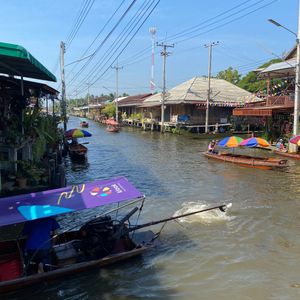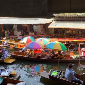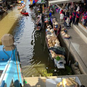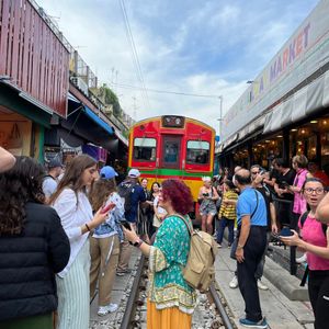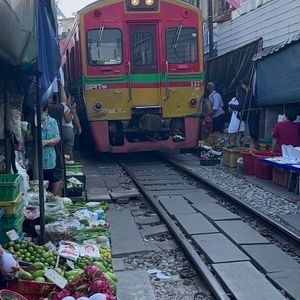 線路市場では電車が来るまで時間が有りましたが、15分位前に立つ場所を確保しました。想像以上に電車が近いのでナメてると危険です。水上マーケットの手漕ぎ船と象乗り10分延長は別料金ですが、絶対にやった方がいいです。手漕ぎ船ではグイグイ売りに来るし、指をさしたり興味有りそうに見ると船頭さんが停めてくれちゃう。私は買い物体験をしたくてココナッツアイスを購入。値段交渉する勇気が無かった。でも美味しかったです。象乗りはとても心地良かったです。延長すると川を渡ってくれるのでお勧め。象さんにチップをねだられると思ったのでポケットに準備してて良かったです。2人で乗って2人ともにねだられましたw 2人分ではなく、それぞれ持ってたほうがいいです。